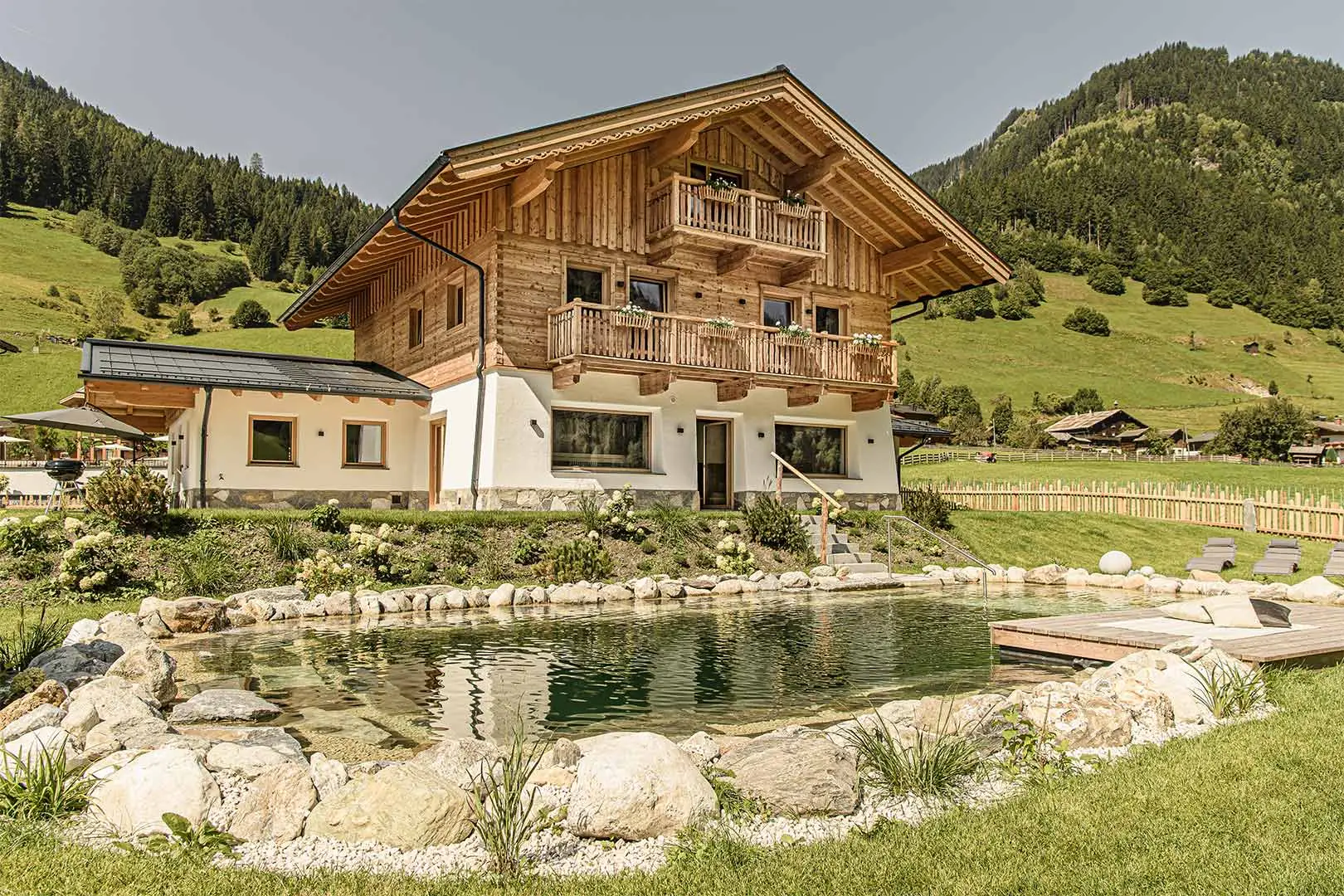 Genieße das Beste aus beiden Welten: naturnahe Erholung kombiniert mit hochwertigem Wohnkomfort. Der Naturhof Eibl bietet dir großzügige Zirben- & Altholz-Schlafzimmer, einen Wellnessbereich mit Sauna & Ruheraum sowie einen privaten Naturbadeteich – ideal für pure Entspannung. Unser Ferienhaus im Salzburger Land bietet Platz für bis zu 10 Personen.